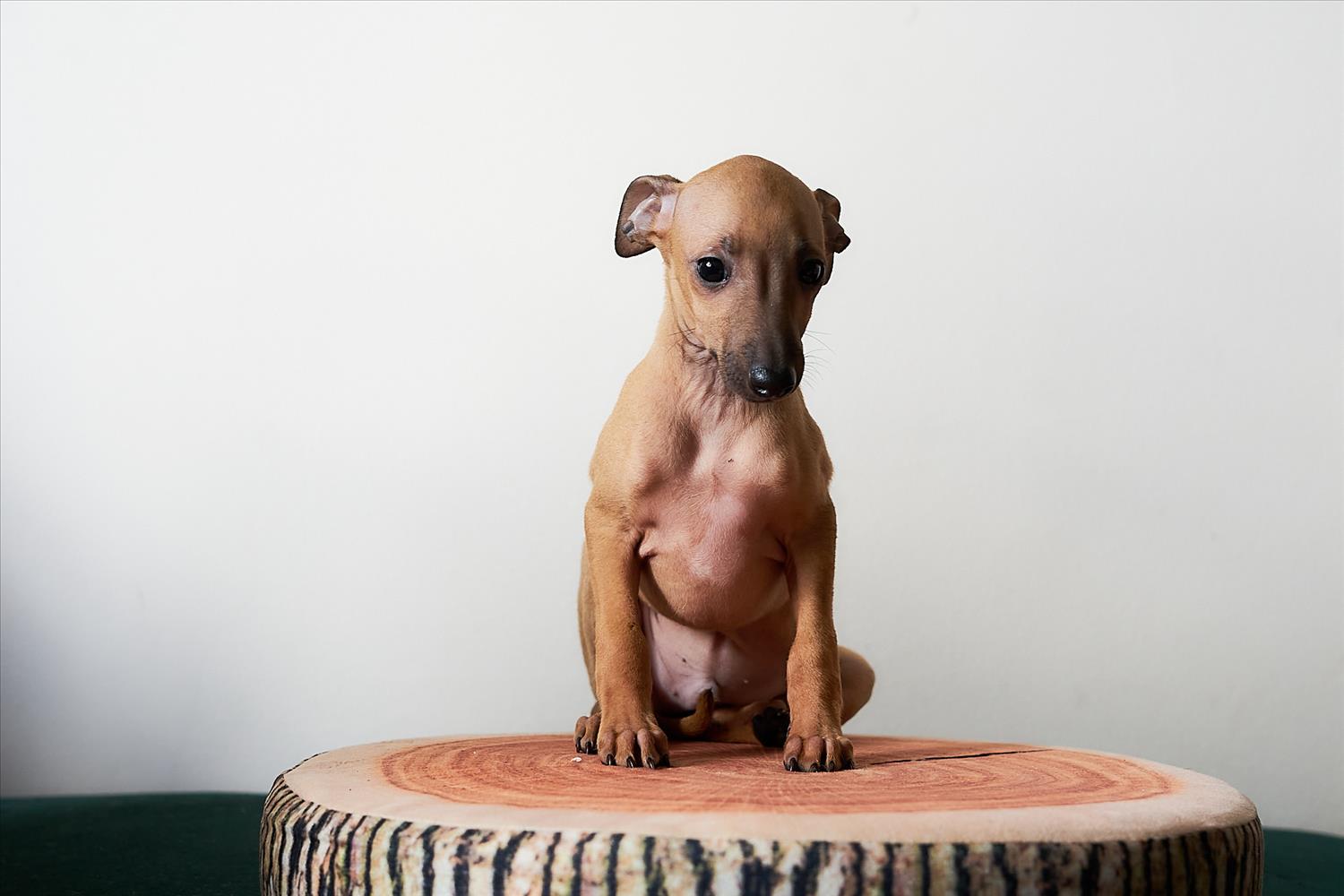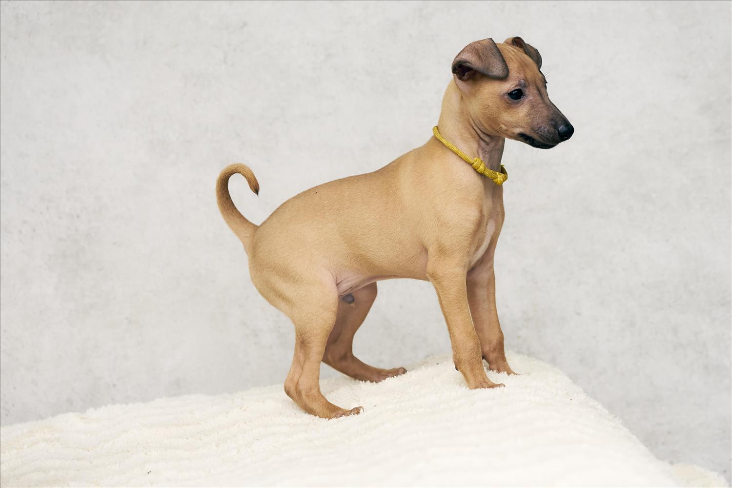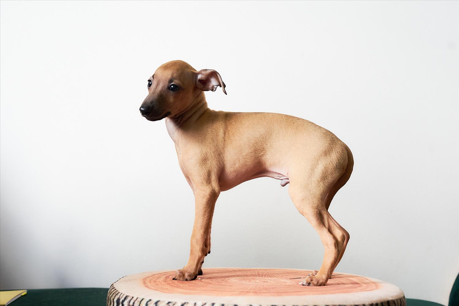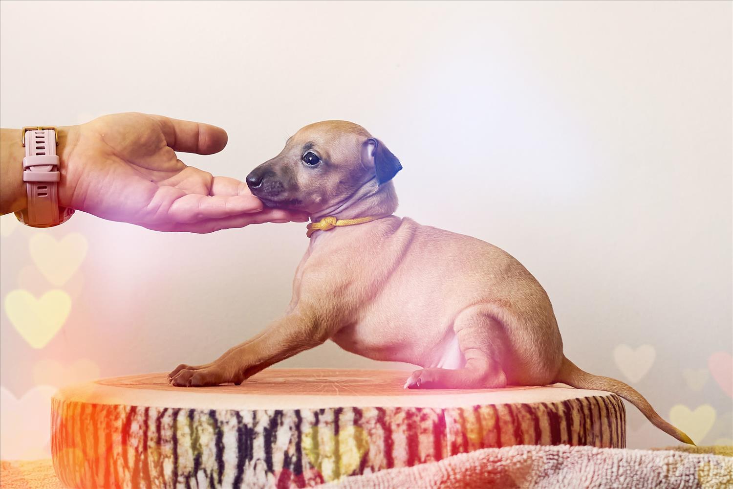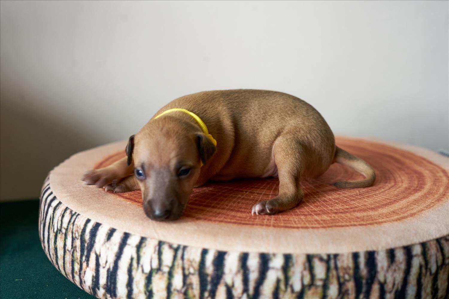 From this carefully thought-out pairing, five isabella-colored puppies were born – in shades ranging from beige and red to deep brown, resembling the hues of wild animals and the savannah. Among them is only one female – Naya Gazelle. All of them have elegant, long heads, tiny ears, and exceptional pigmentation.