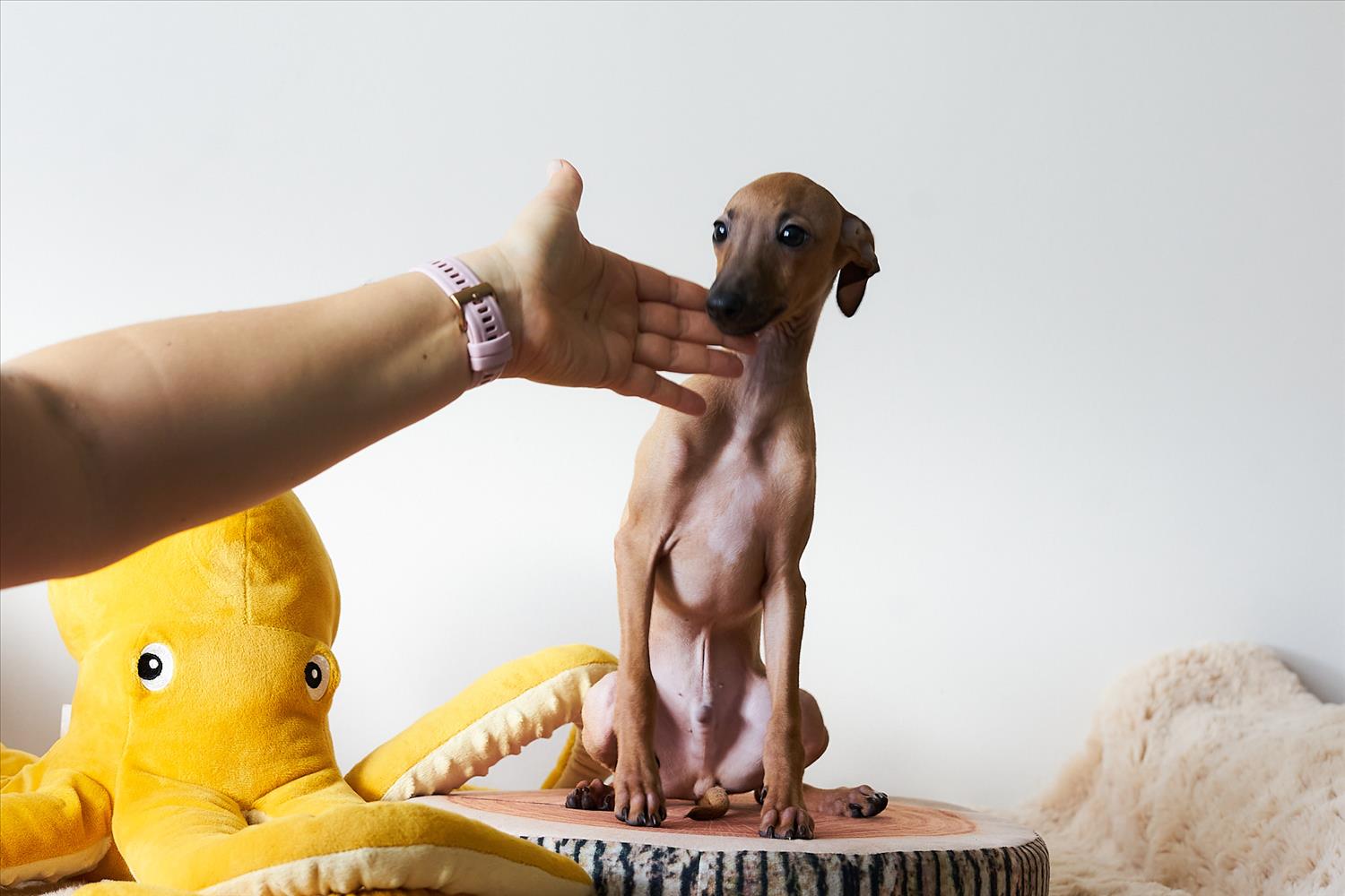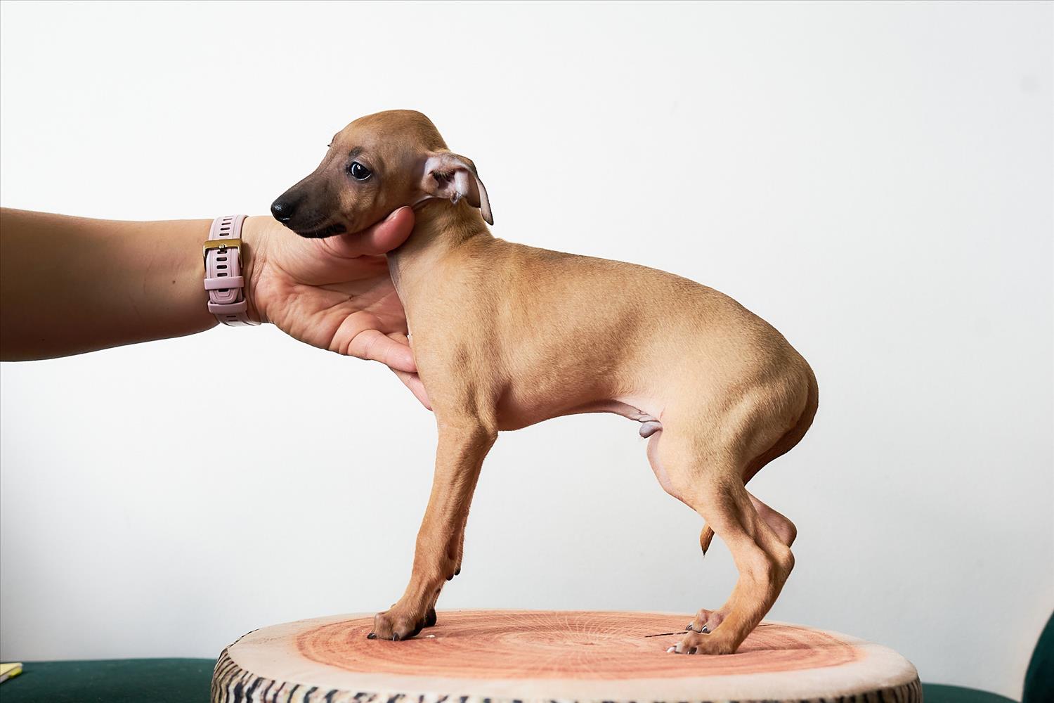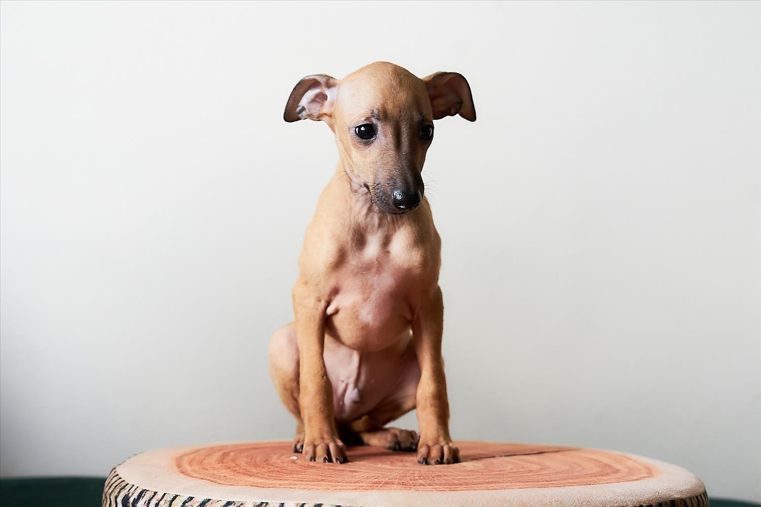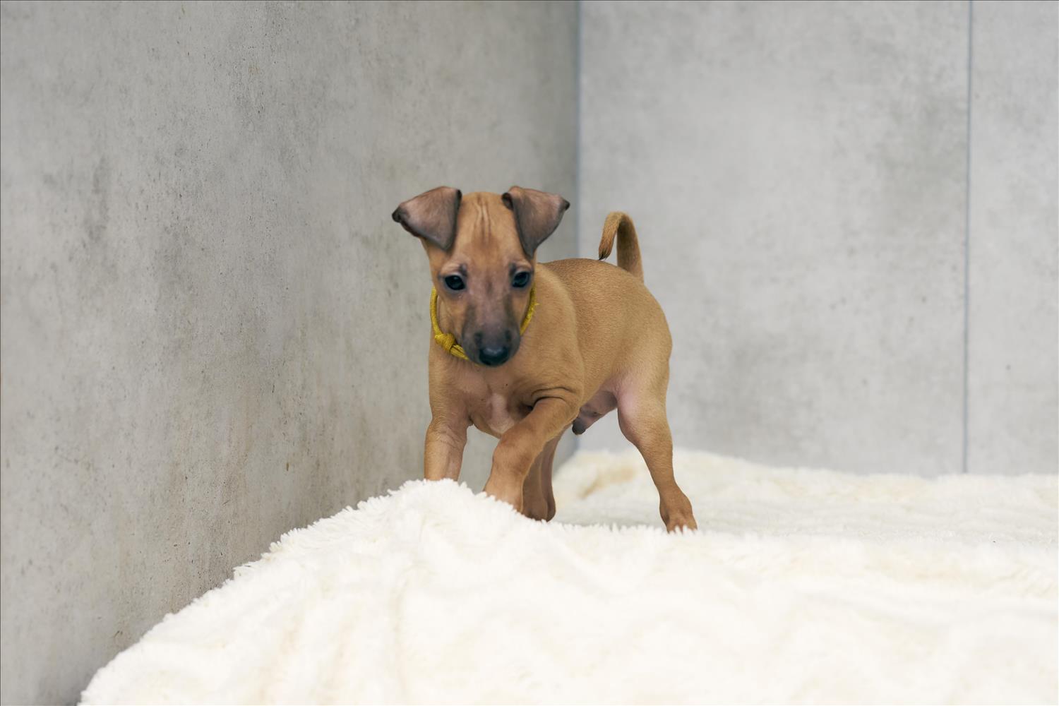 From this carefully thought-out pairing, five isabella-colored puppies were born – in shades ranging from beige and red to deep brown, resembling the hues of wild animals and the savannah. Among them is only one female – Naya Gazelle. All of them have elegant, long heads, tiny ears, and exceptional pigmentation.