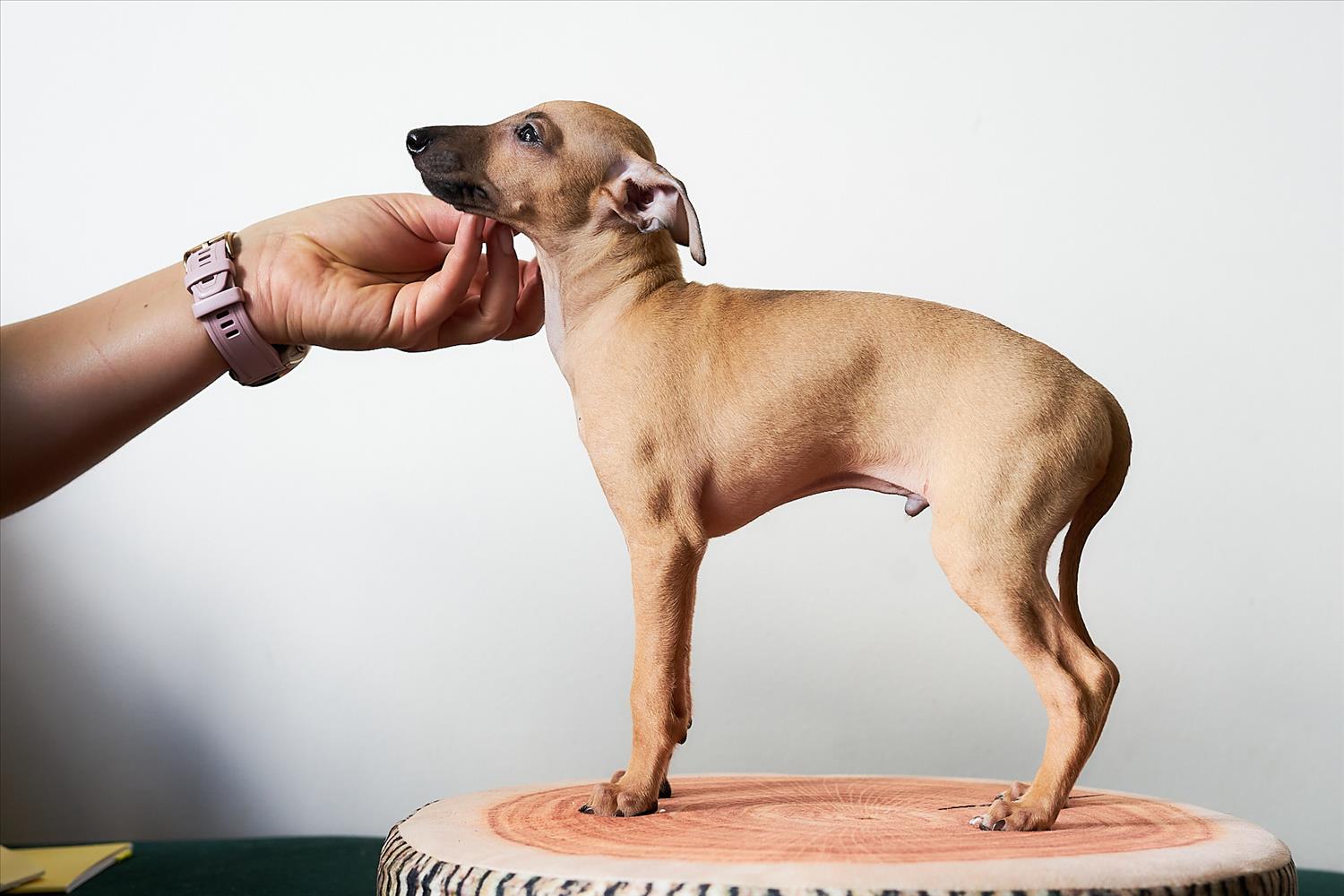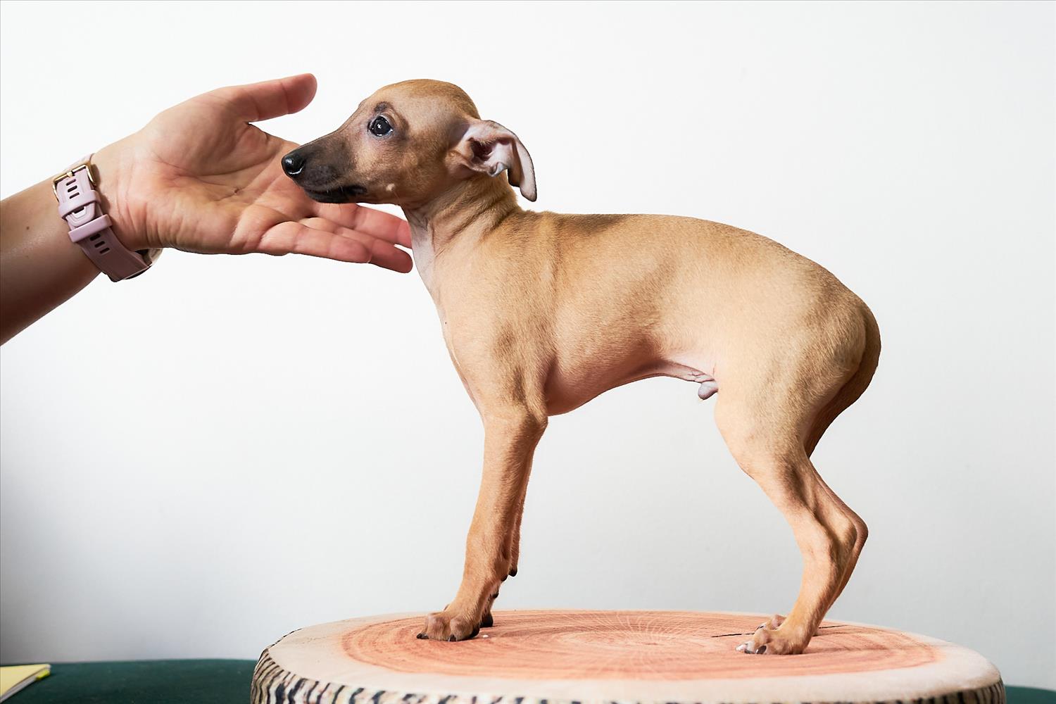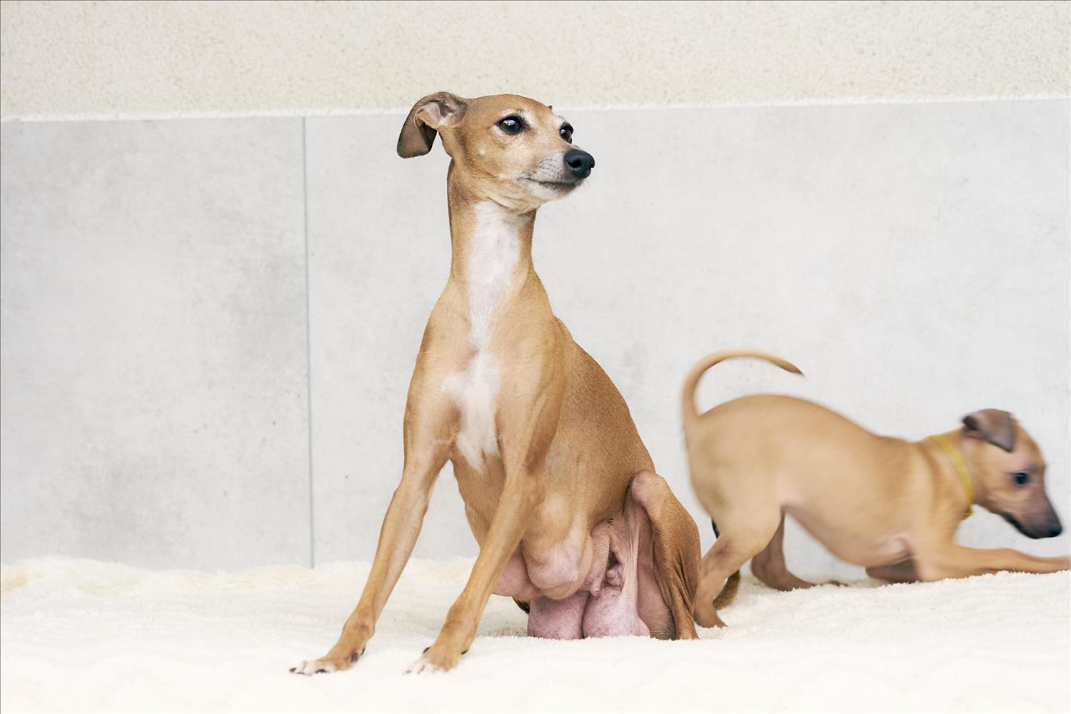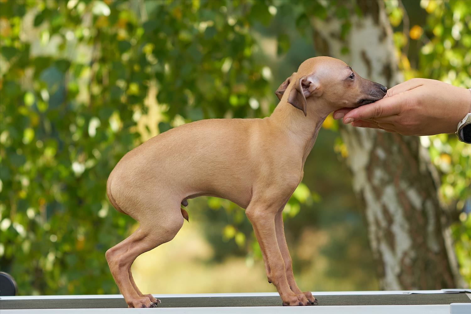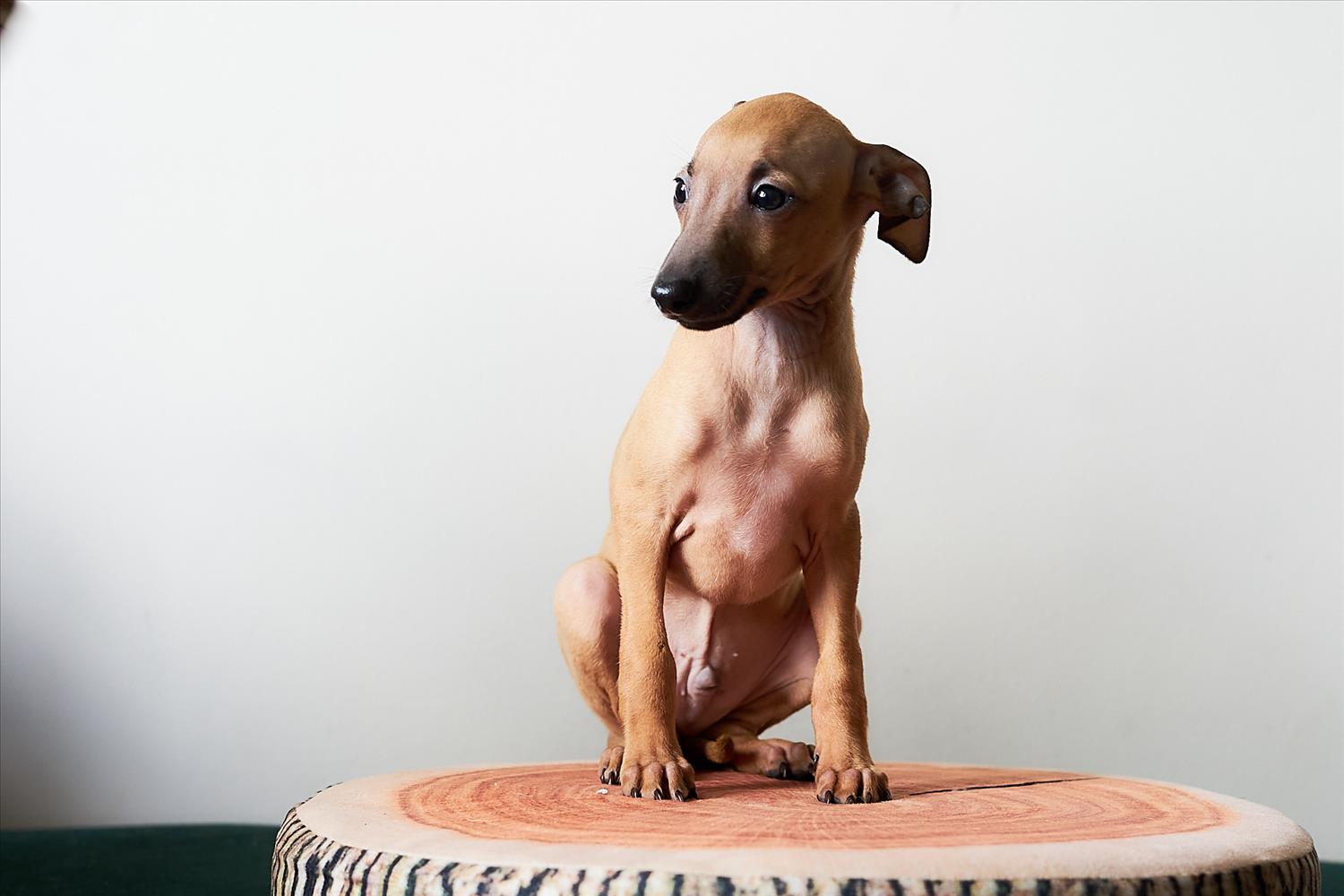 From this carefully thought-out pairing, five isabella-colored puppies were born – in shades ranging from beige and red to deep brown, resembling the hues of wild animals and the savannah. Among them is only one female – Naya Gazelle. All of them have elegant, long heads, tiny ears, and exceptional pigmentation.
