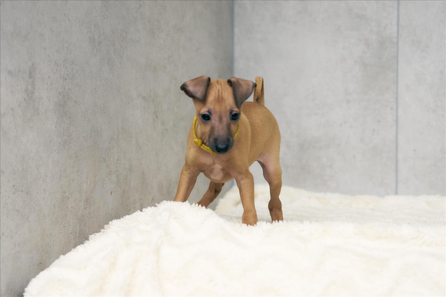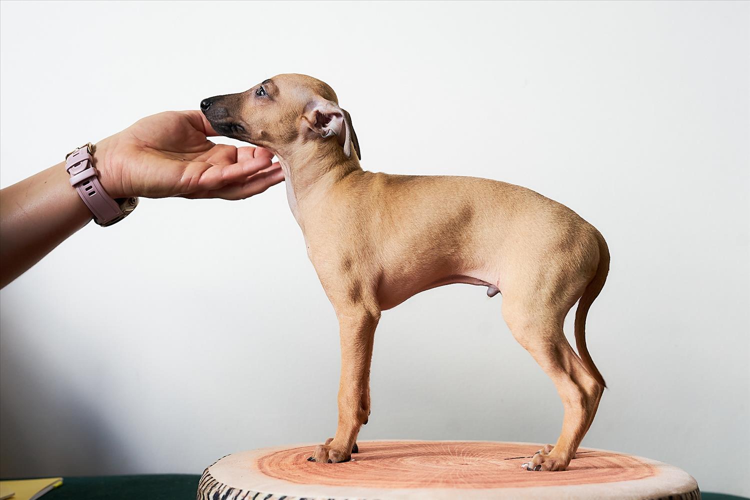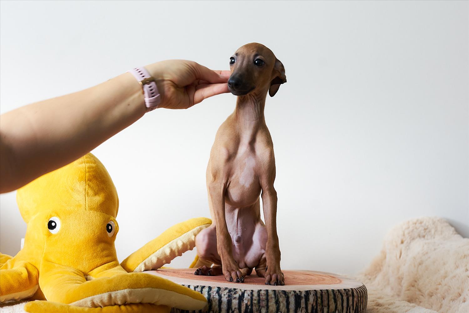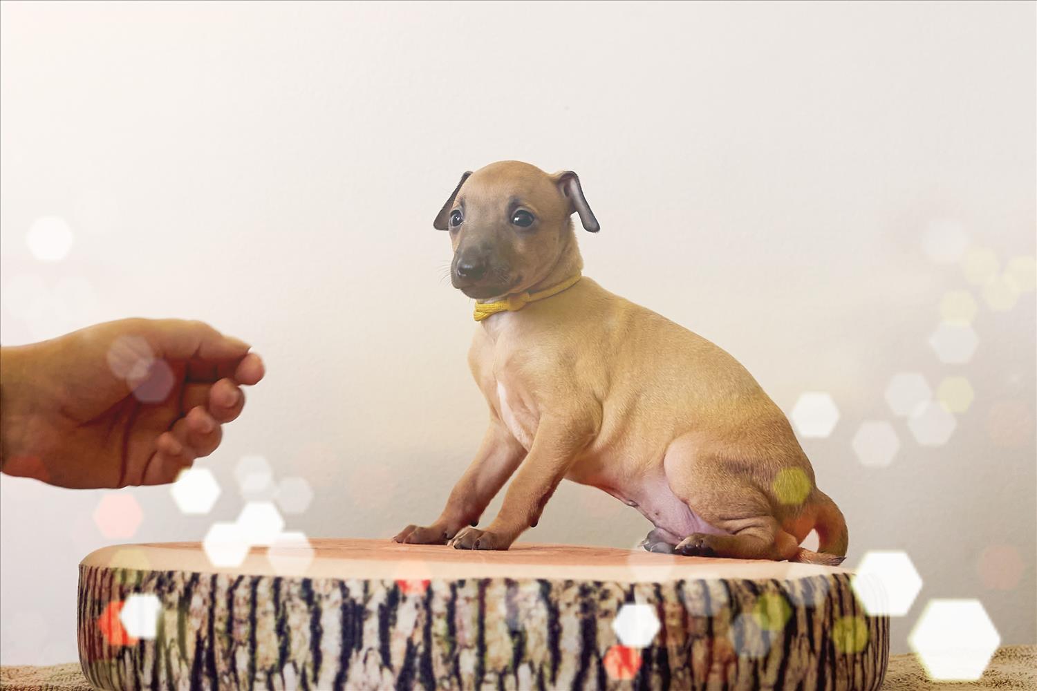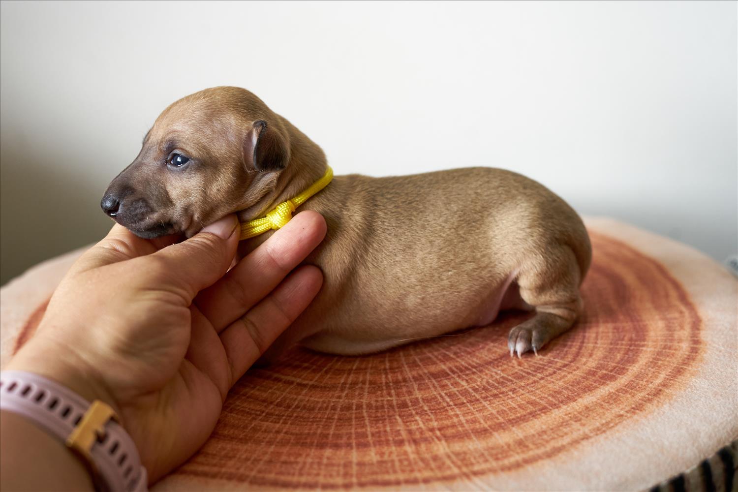 From this carefully thought-out pairing, five isabella-colored puppies were born – in shades ranging from beige and red to deep brown, resembling the hues of wild animals and the savannah. Among them is only one female – Naya Gazelle. All of them have elegant, long heads, tiny ears, and exceptional pigmentation.
