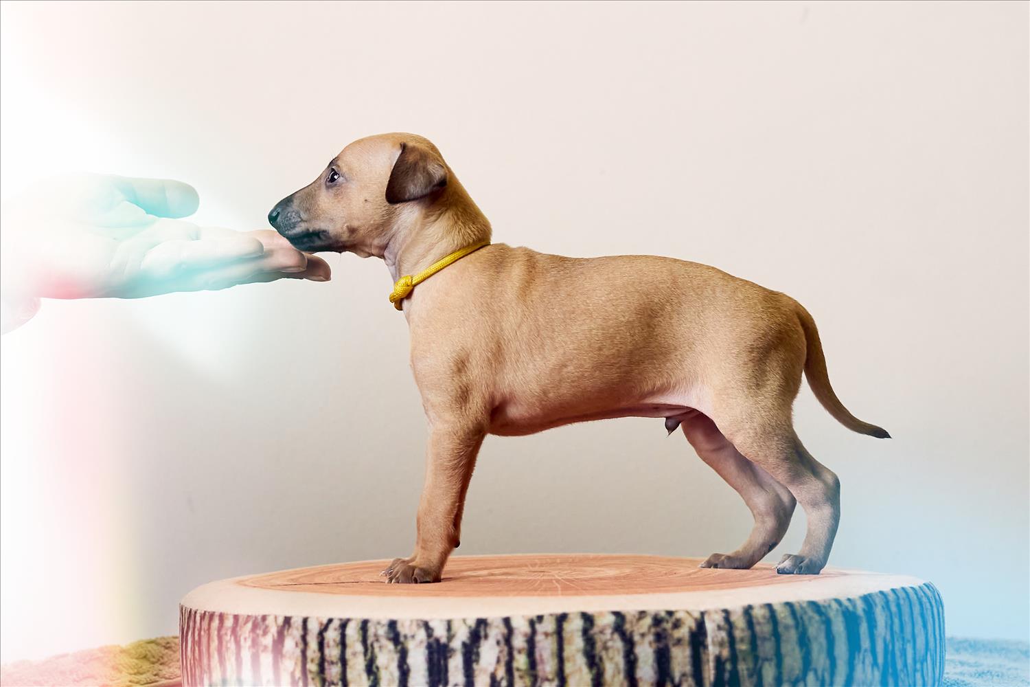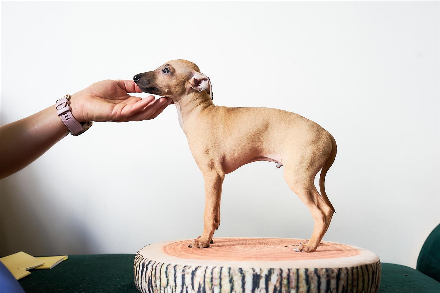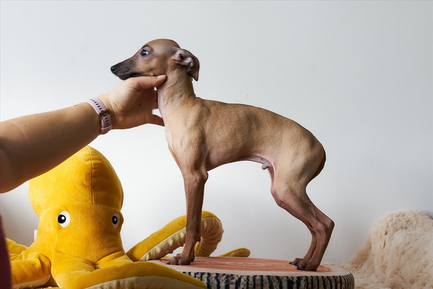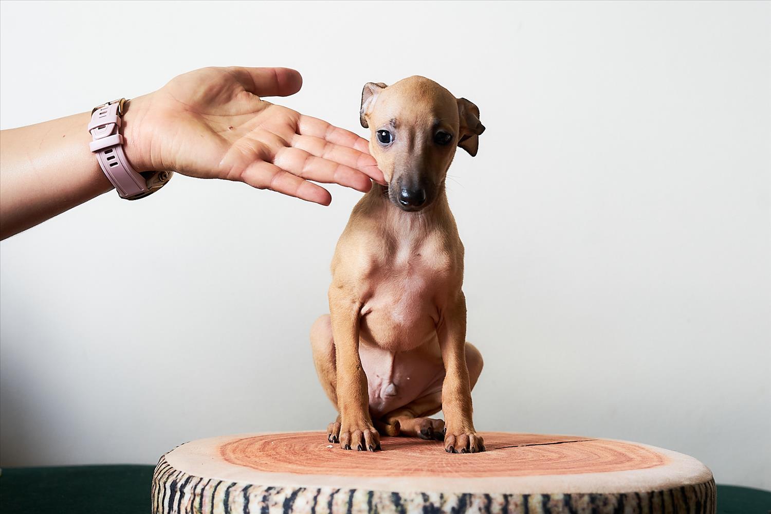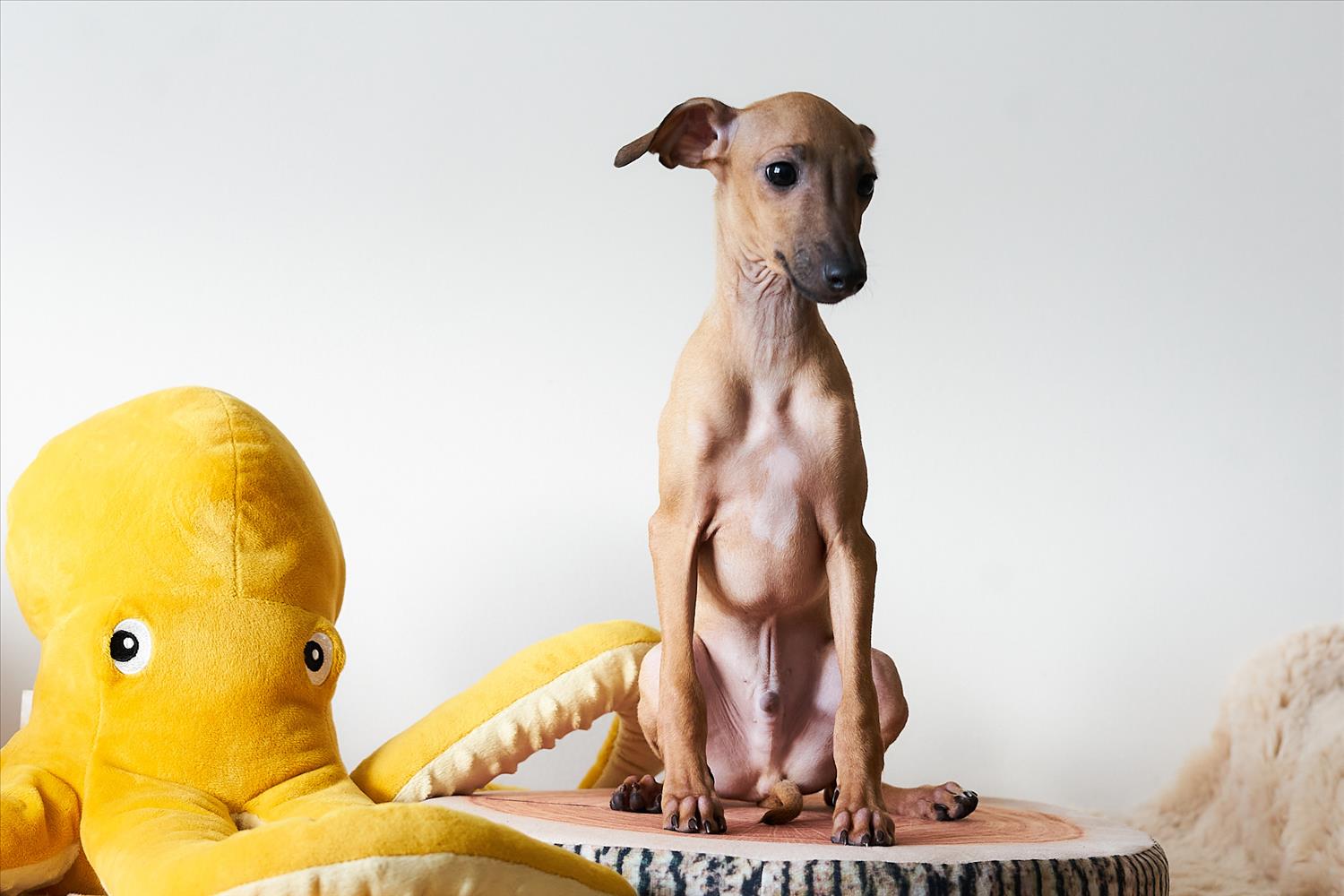 From this carefully thought-out pairing, five isabella-colored puppies were born – in shades ranging from beige and red to deep brown, resembling the hues of wild animals and the savannah. Among them is only one female – Naya Gazelle. All of them have elegant, long heads, tiny ears, and exceptional pigmentation.
