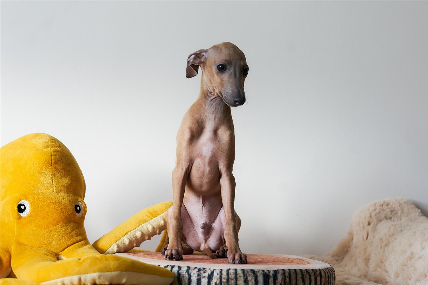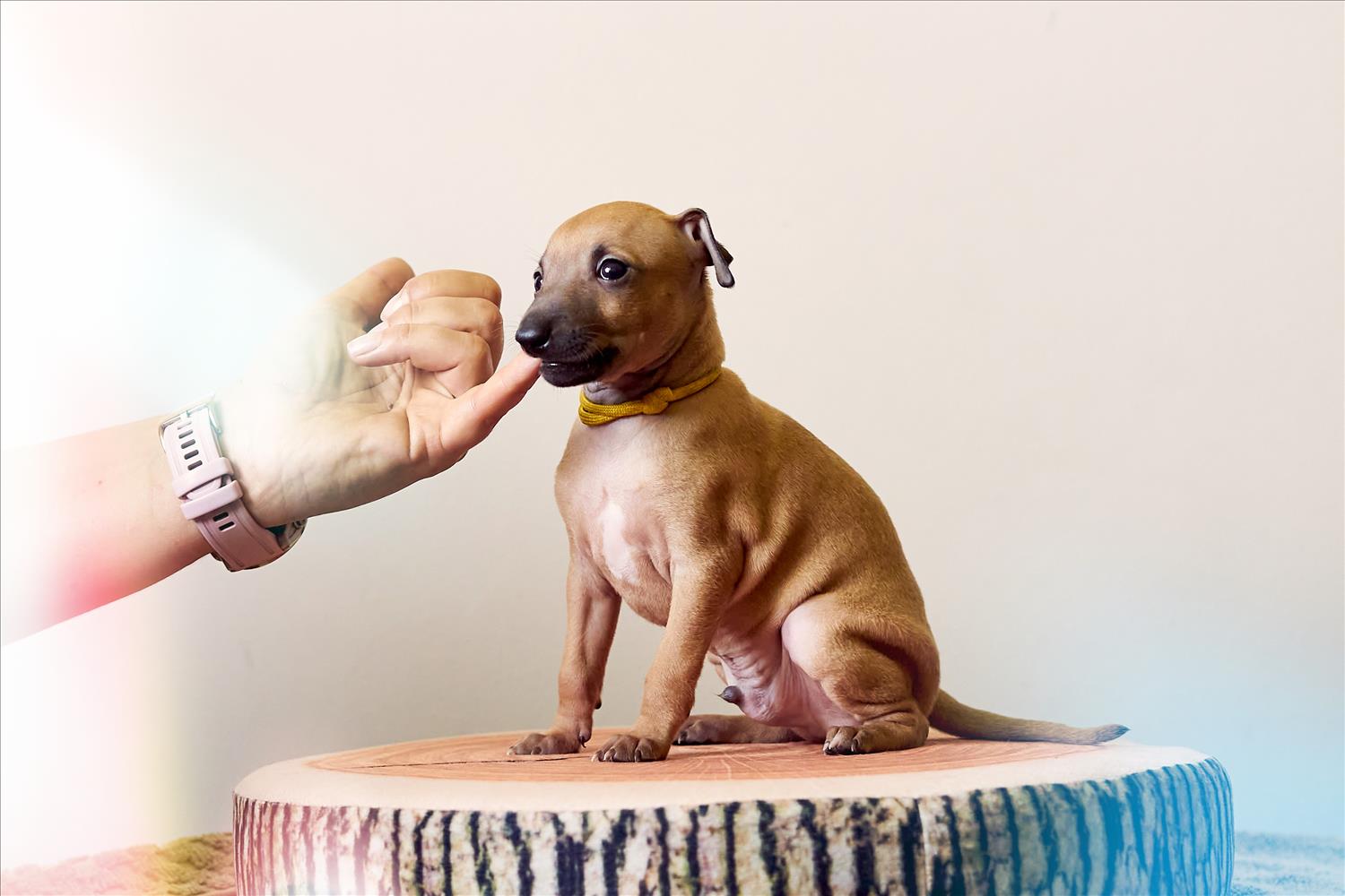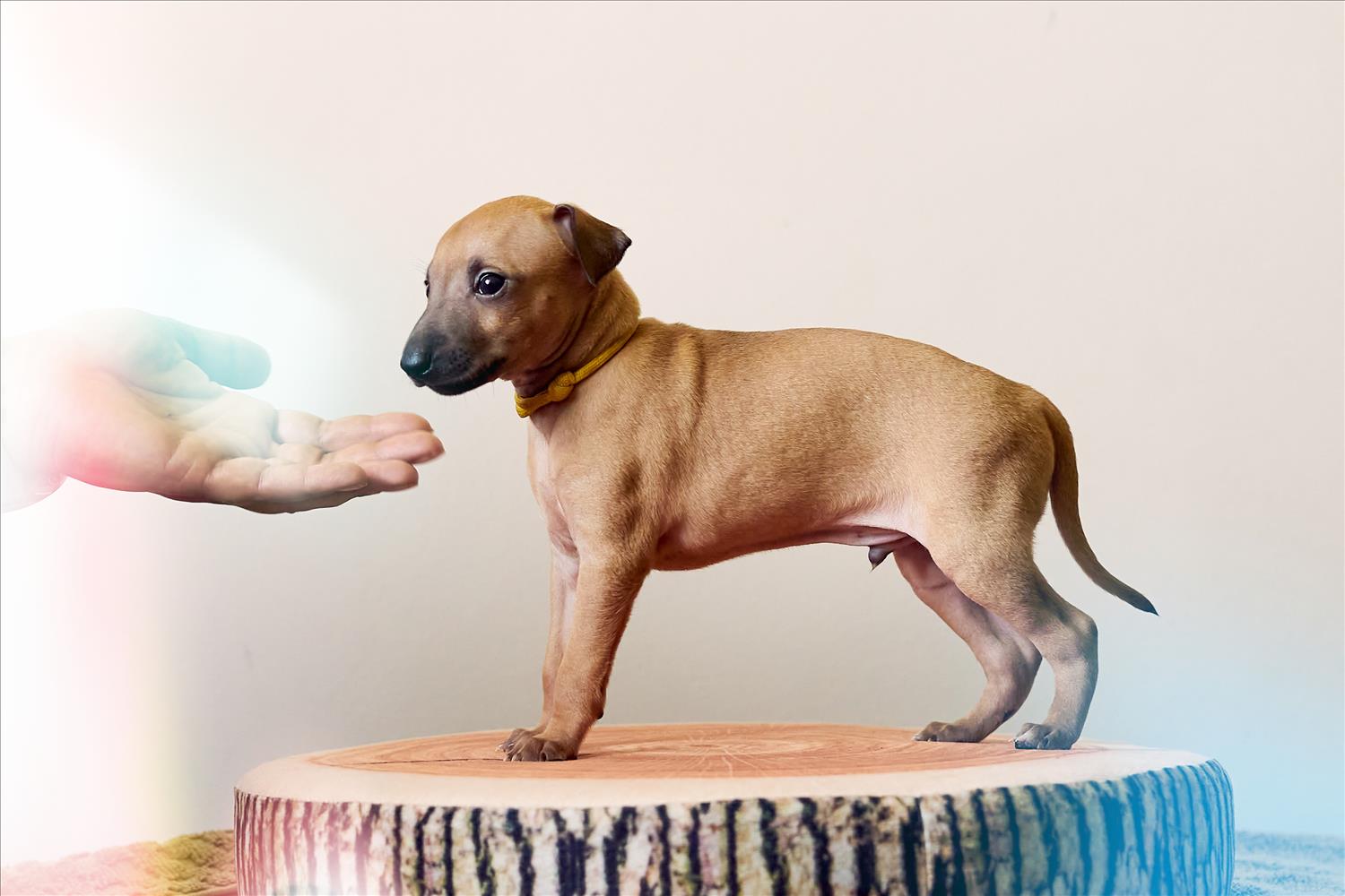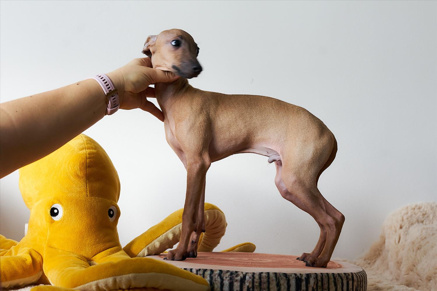From this carefully thought-out pairing, five isabella-colored puppies were born – in shades ranging from beige and red to deep brown, resembling the hues of wild animals and the savannah. Among them is only one female – Naya Gazelle. All of them have elegant, long heads, tiny ears, and exceptional pigmentation.