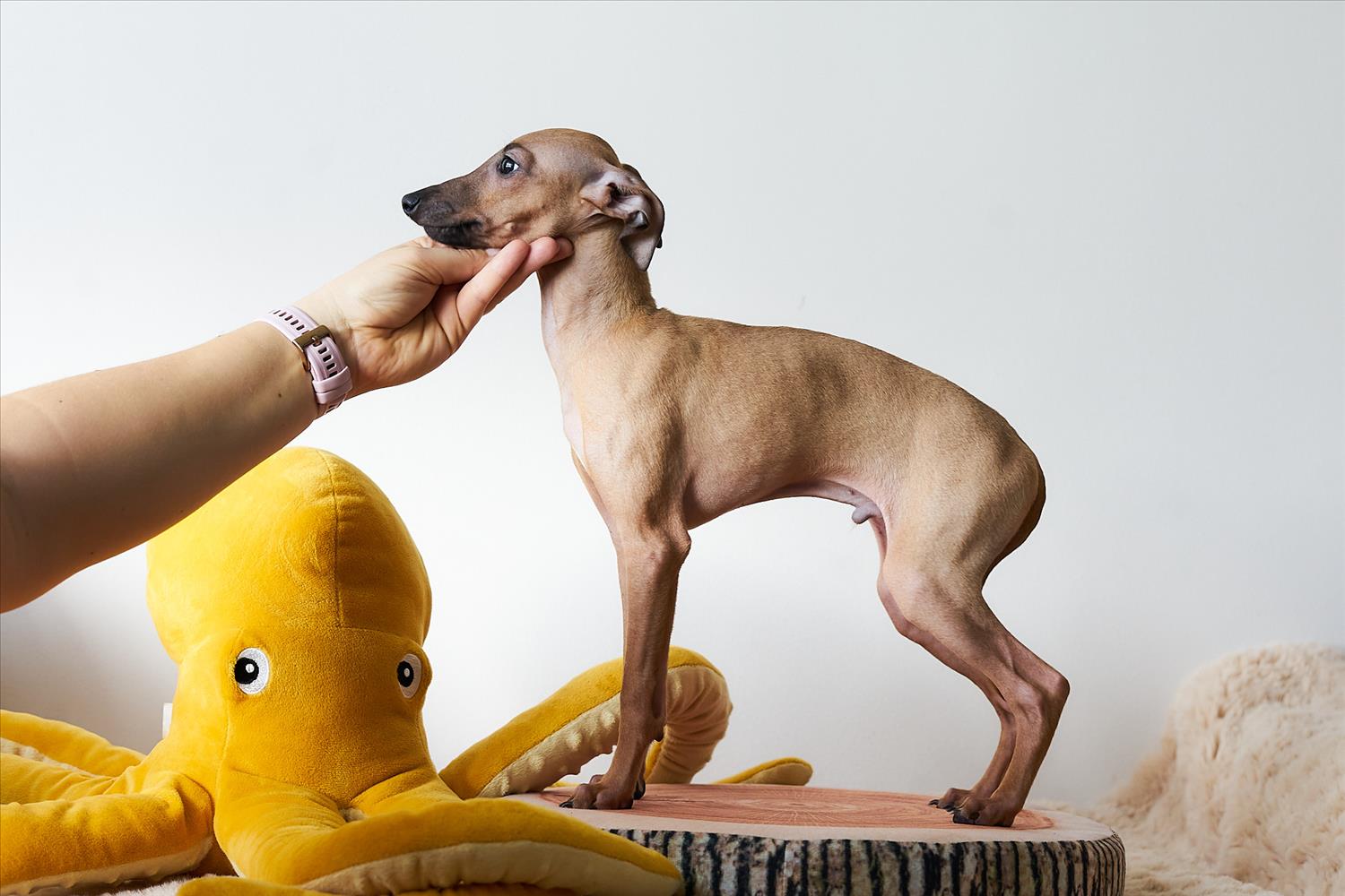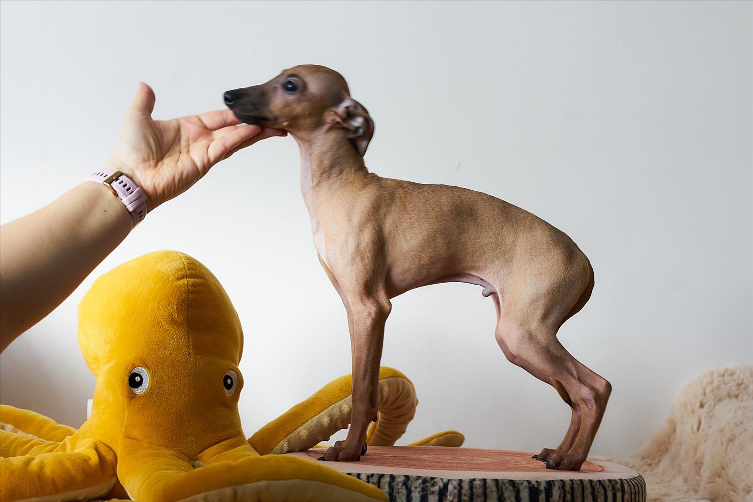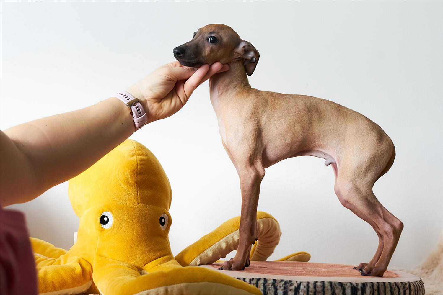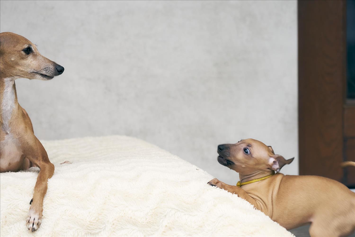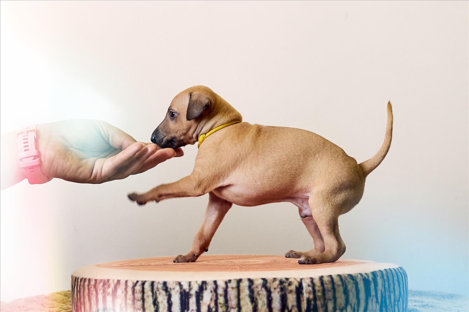From this carefully thought-out pairing, five isabella-colored puppies were born – in shades ranging from beige and red to deep brown, resembling the hues of wild animals and the savannah. Among them is only one female – Naya Gazelle. All of them have elegant, long heads, tiny ears, and exceptional pigmentation.
