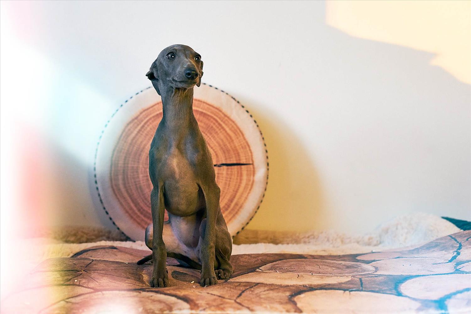 The mother of the litter, Desert Rose Super Charty, is a bitch of exceptional elegance and refined, slender structure, with a very narrow and long head and an almost imperceptible stop. Coco is an extremely gentle, sensitive and affectionate soul – a true princess by nature. She adores comfort, warmth, cuddles and good food, and is deeply people-oriented, with a soft and loving temperament.