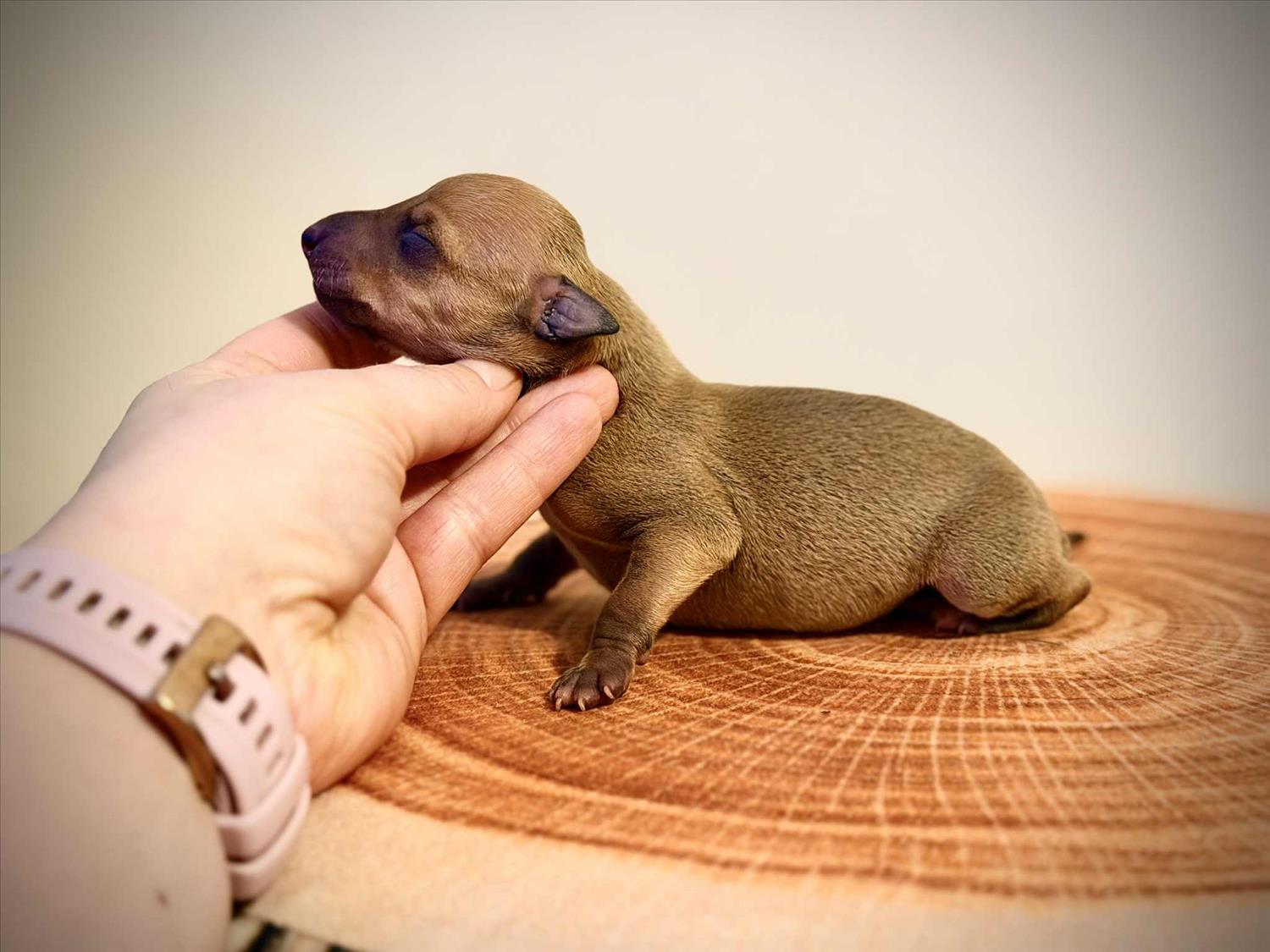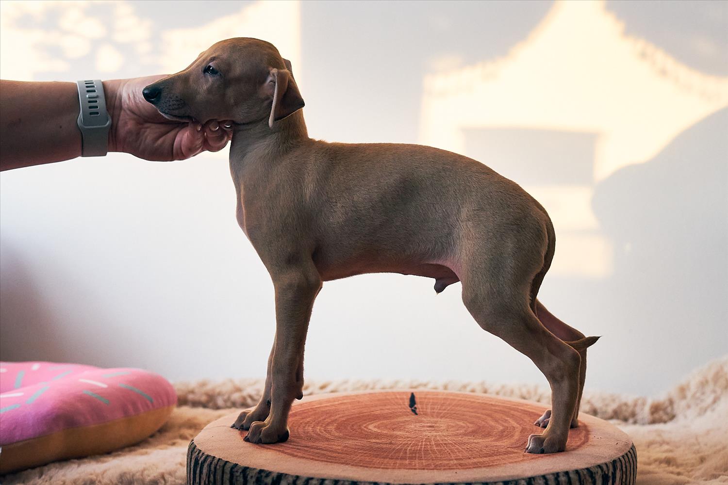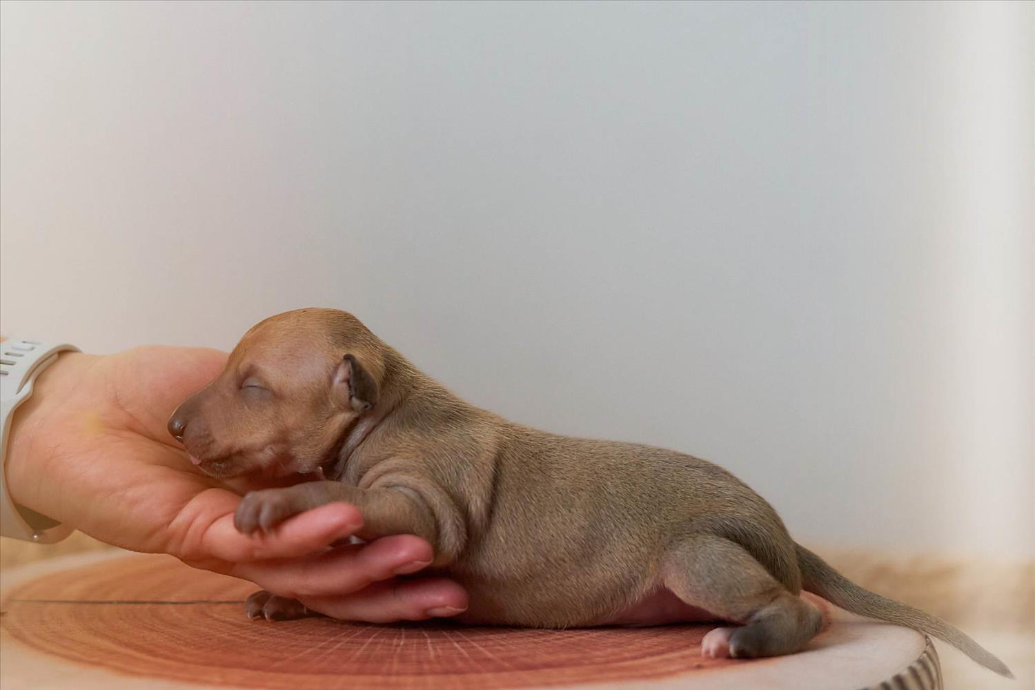 On January 10th, our bitch Evita gave birth to five puppies in a beautiful isabella coat color – four males and one female. Shades of sand, sun, and desert dawn. Delicacy shaped into the form of an Italian Greyhound.