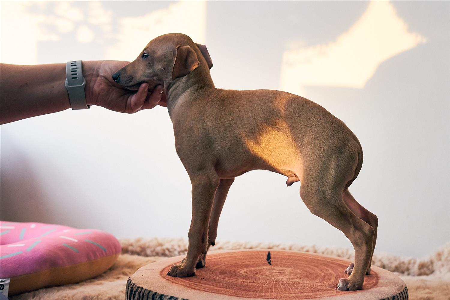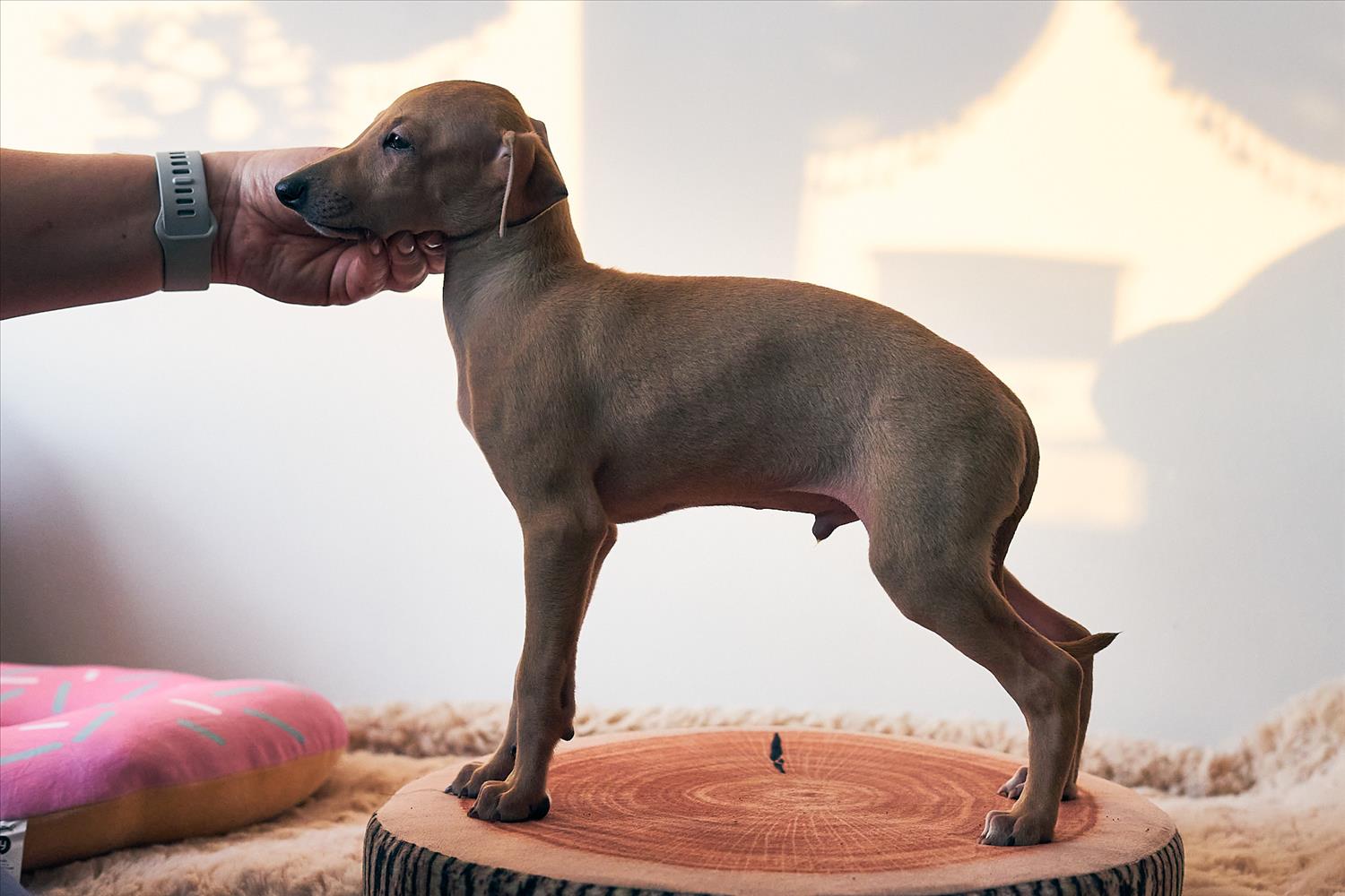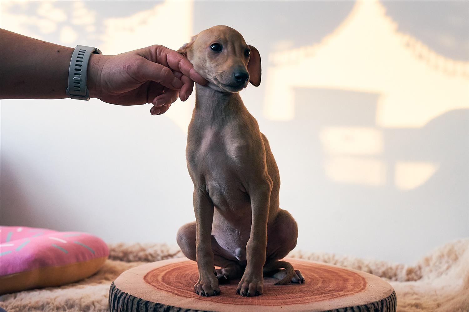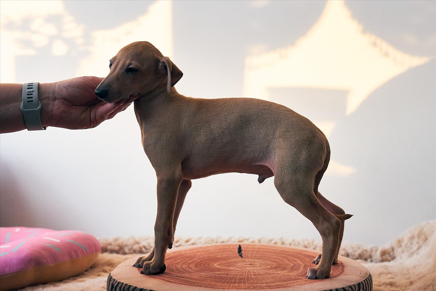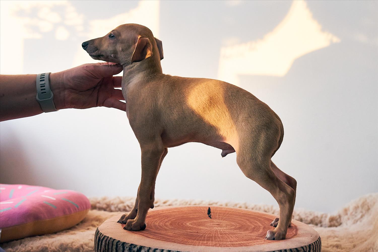 Macchiato – Macho – is Polish Junior Champion, Polish Junior Winner, and Polish Champion. He represents the ideal Italian Greyhound in both appearance and character. He captivates with his expression, large dark eyes, exceptional pigmentation, and balanced silhouette. At the same time, he is incredibly friendly and affectionate – a temperament he clearly passes on to his puppies.