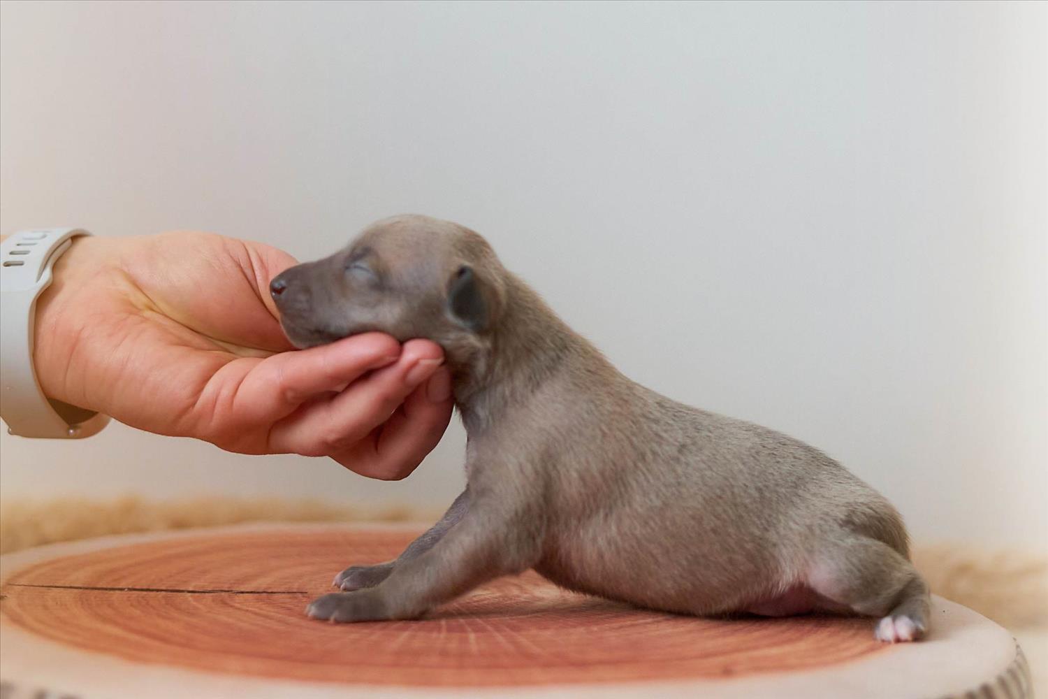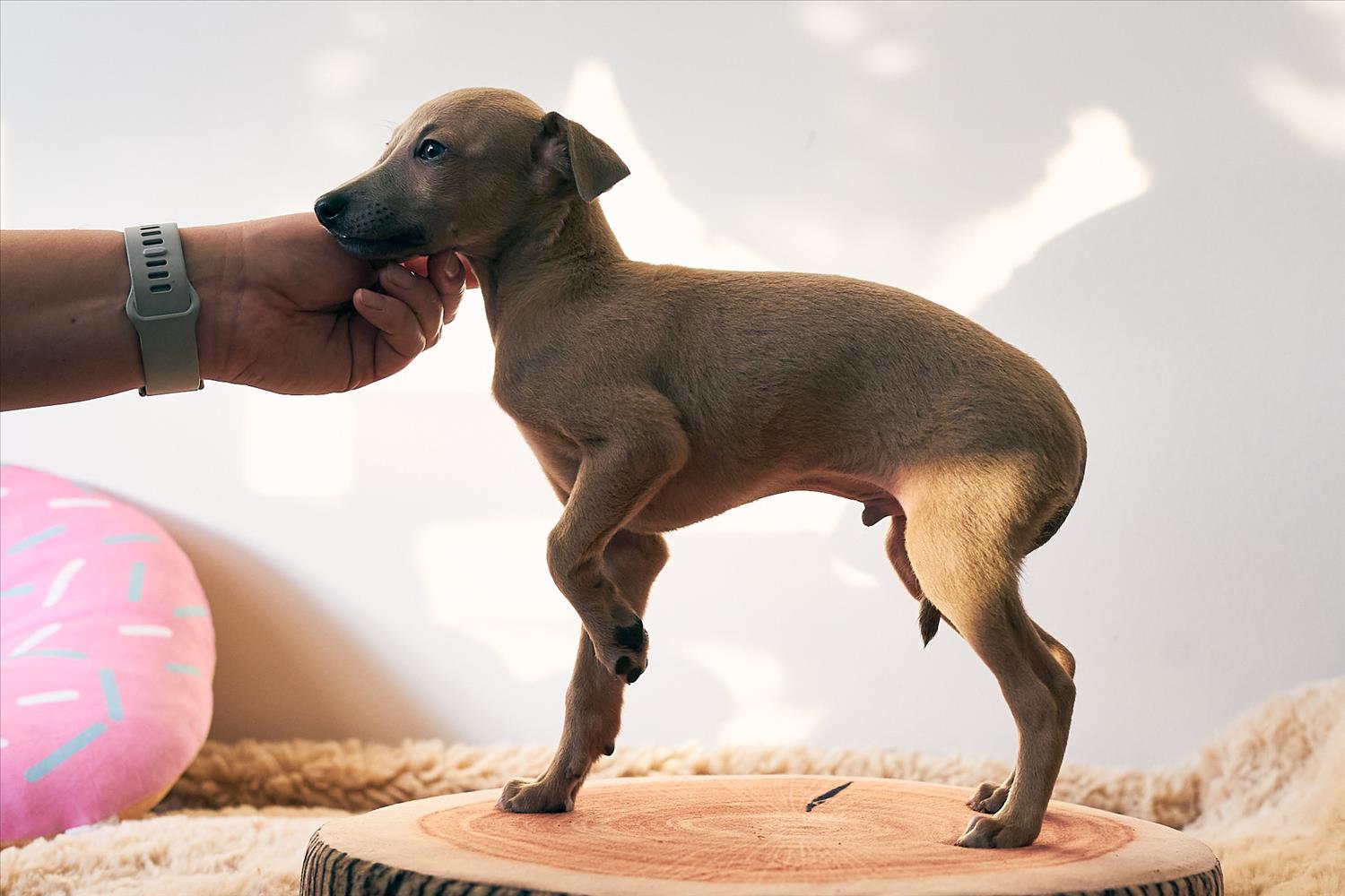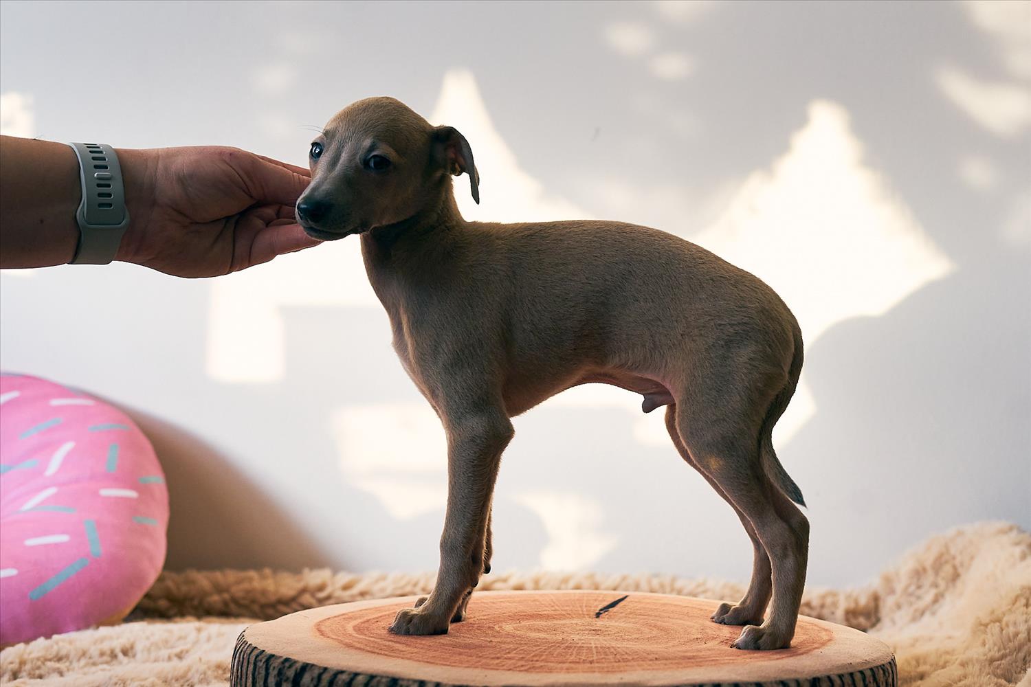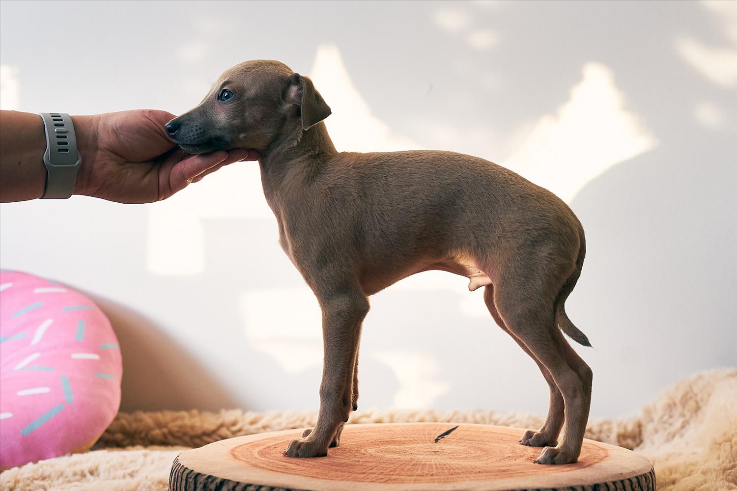 Macchiato – Macho – is Polish Junior Champion, Polish Junior Winner, and Polish Champion. He represents the ideal Italian Greyhound in both appearance and character. He captivates with his expression, large dark eyes, exceptional pigmentation, and balanced silhouette. At the same time, he is incredibly friendly and affectionate – a temperament he clearly passes on to his puppies.