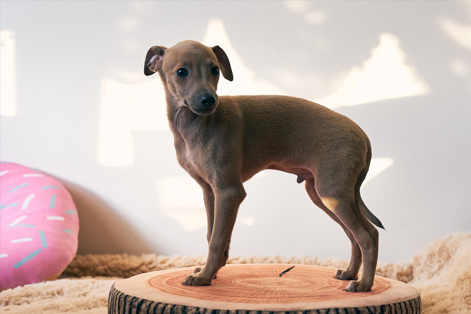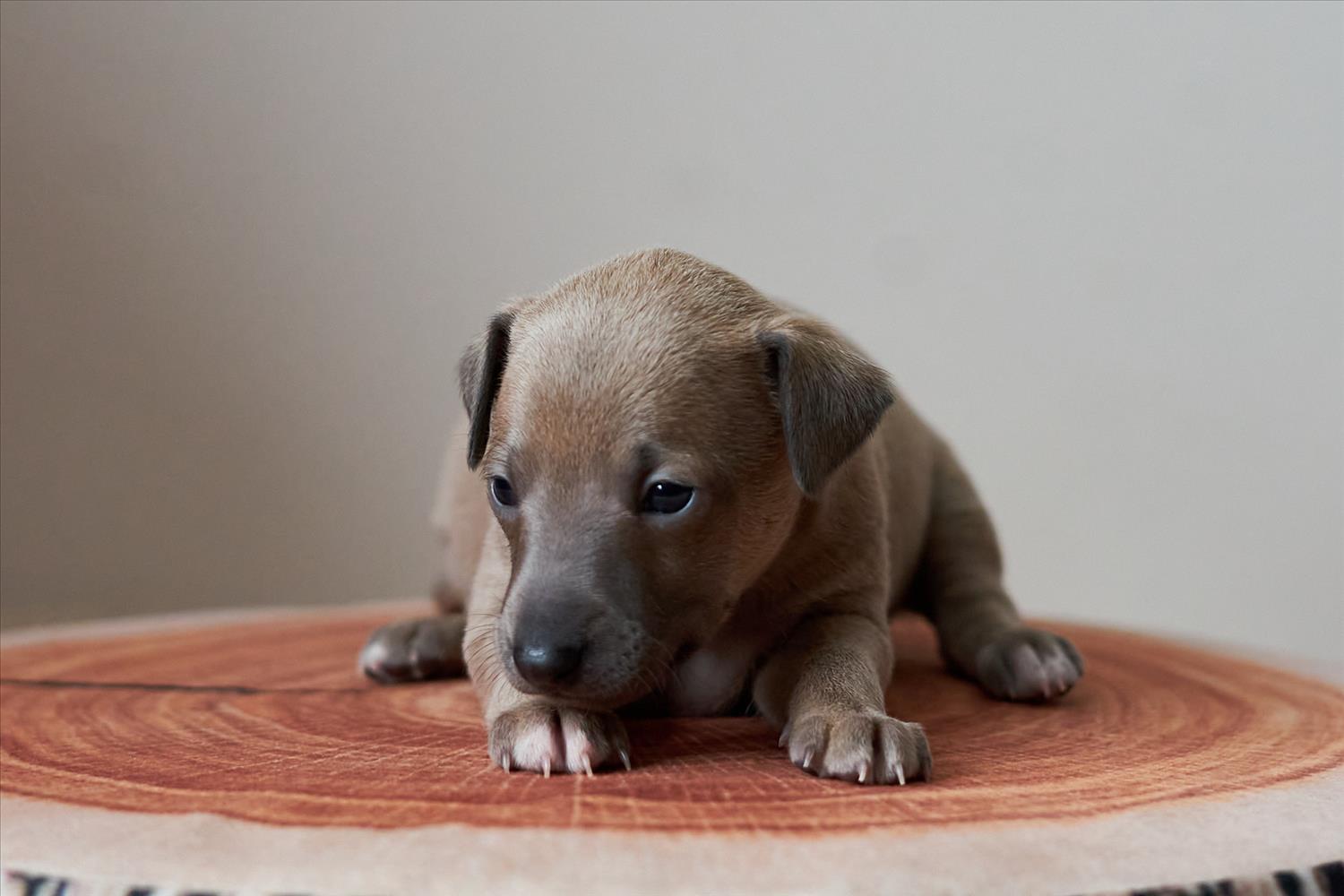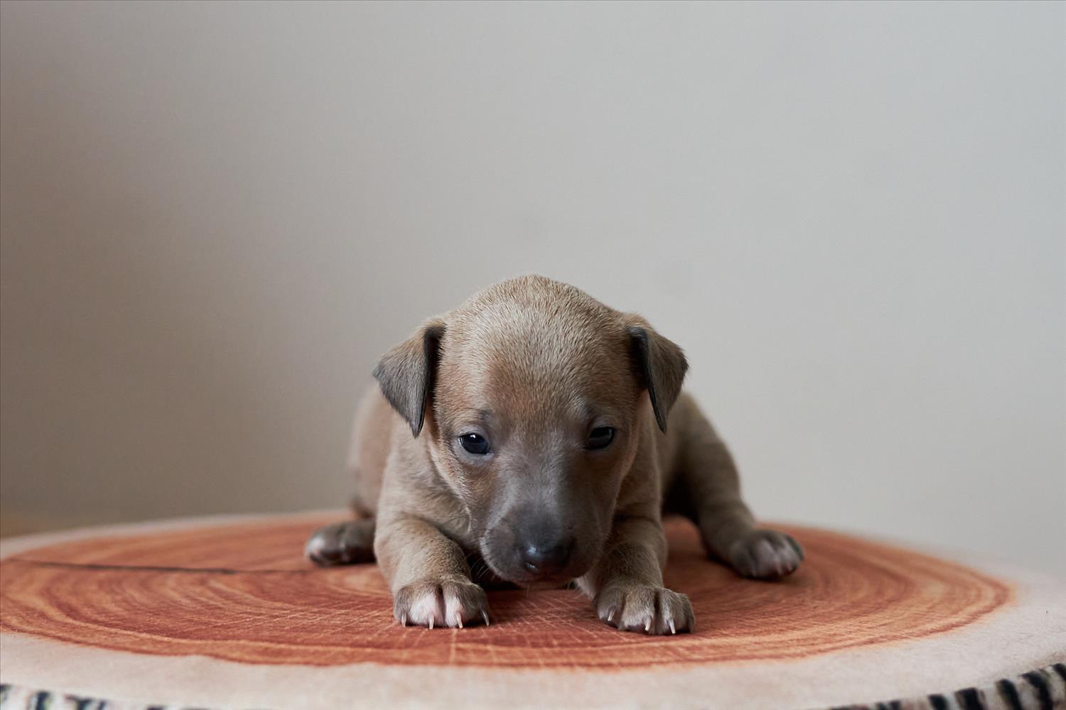 On January 10th, our bitch Evita gave birth to five puppies in a beautiful isabella coat colorfour males and one female. Shades of sand, sun, and desert dawn. Delicacy shaped into the form of an Italian Greyhound.