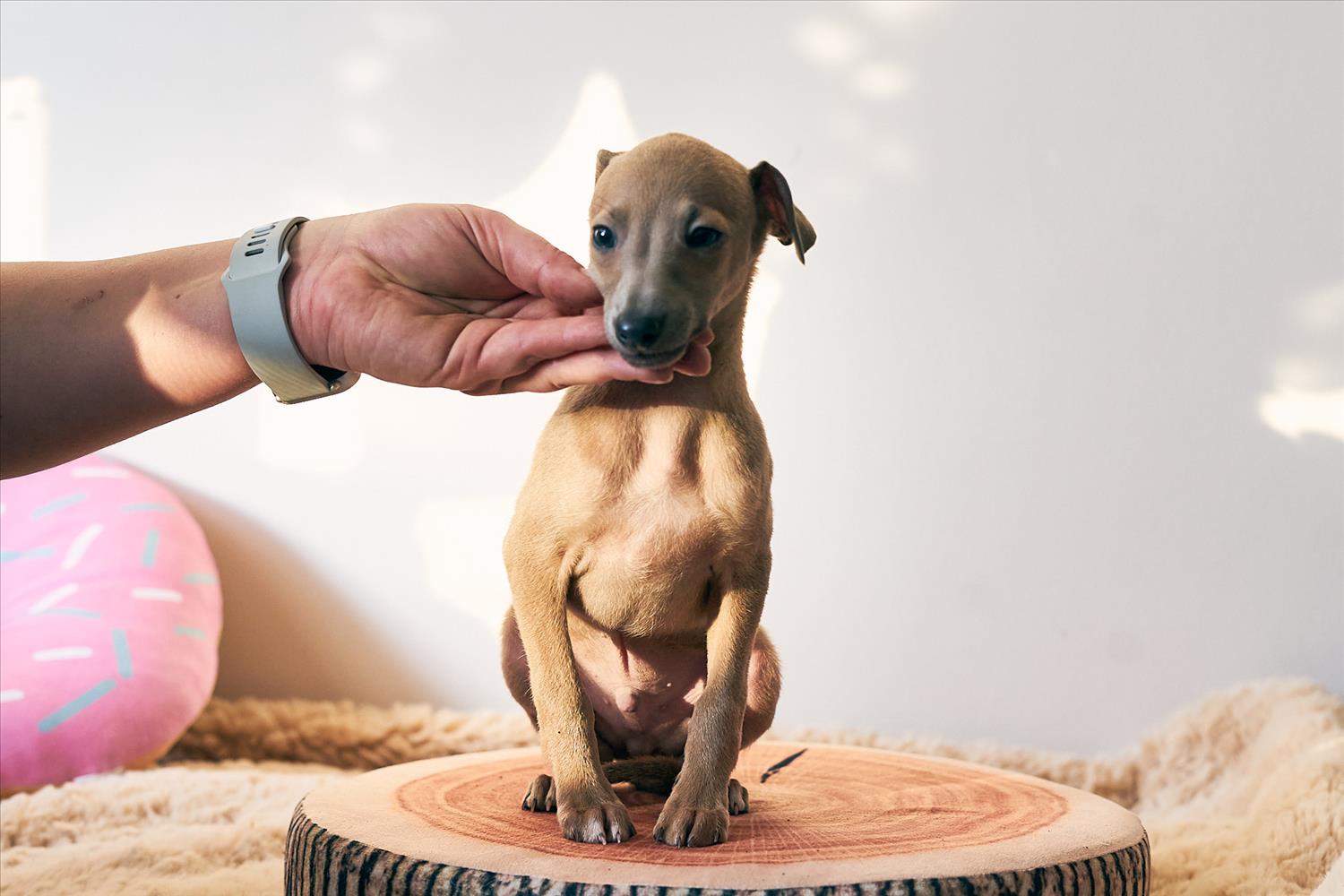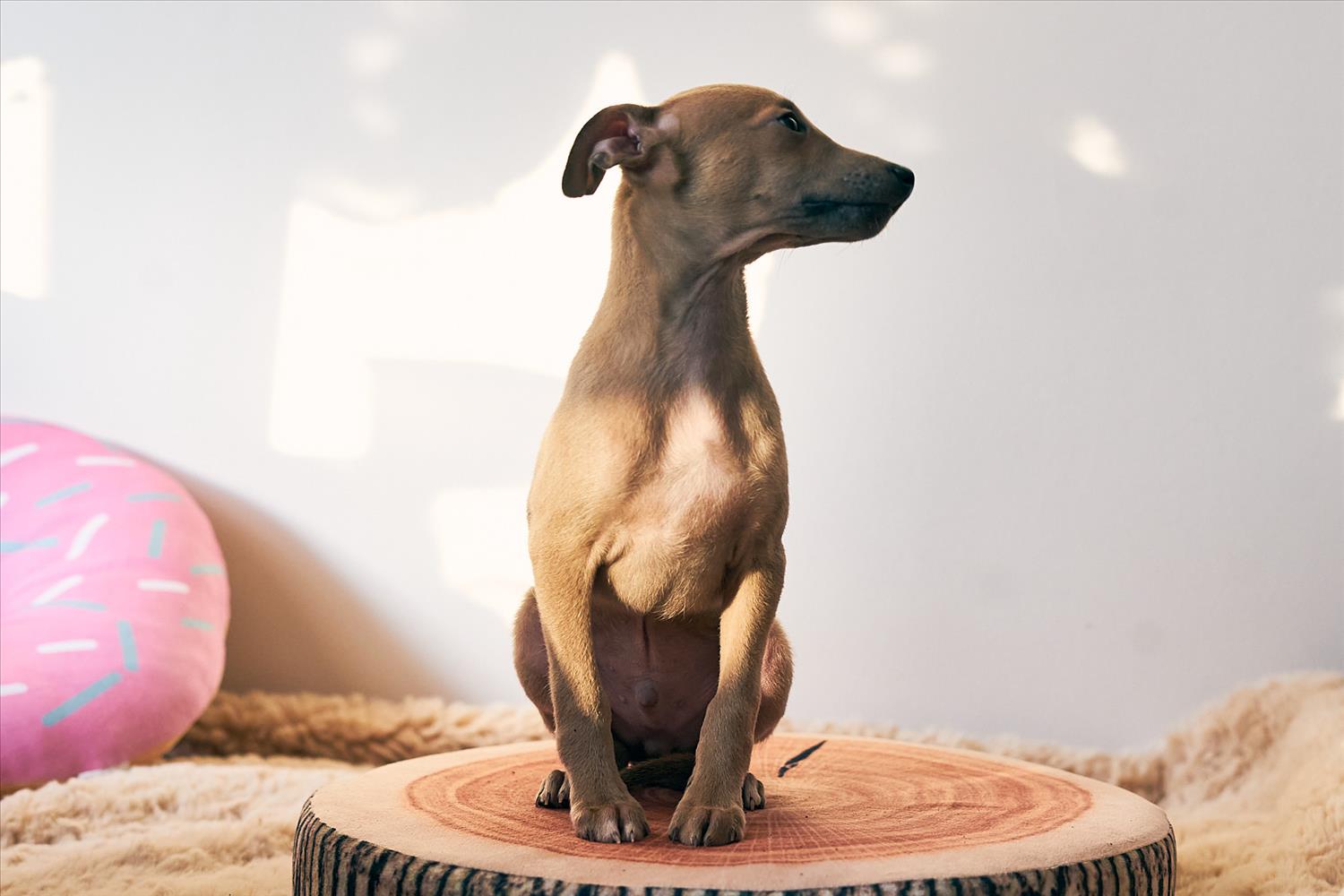 Evita to suczka urodzona w naszej hodowli. Niewielka, subtelna, o lekkiej i delikatnej budowie – nieprzekraczająca 4,5 kg. Z natury łagodna, a jednocześnie świadoma swojej obecności. Lubi być w centrum uwagi, bywa zazdrosna o swojego człowieka, bo jak każdy prawdziwy charcik – musi być blisko, zawsze.